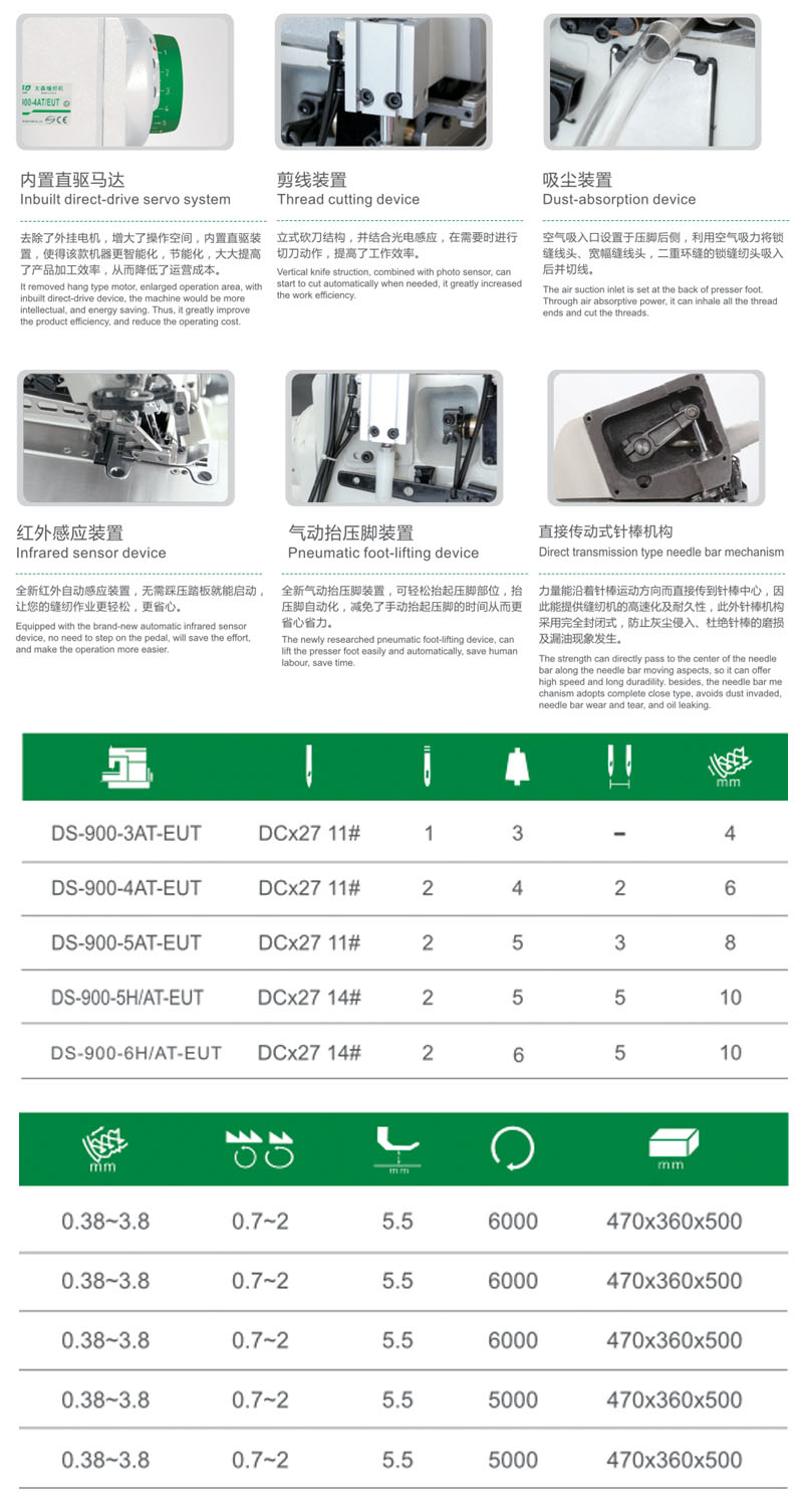 It is a new generation of products with precision machinery and electronic technology. It is widely used in the sewing of garments, underwear, bedding, thin packaging and leather products. There are many kinds of stitches to choose from. The tension can be adjusted simply to produce good sewing samples. The maximum sewing speed is 8000 rpm, which realizes high-speed sewing and improves production efficiency. The built-in needle rod prevents oil leakage. At the same time, the parts are designed with wear resistance, which is more wear-resistant and durable. It reduces the maintenance rate and reduces the cost. The adjustment of the front and back of double ring bending needle and the adjustment of the front and back of the upper bending needle can be simply adjusted by the regulator, thus saving the time needed for maintenance.
