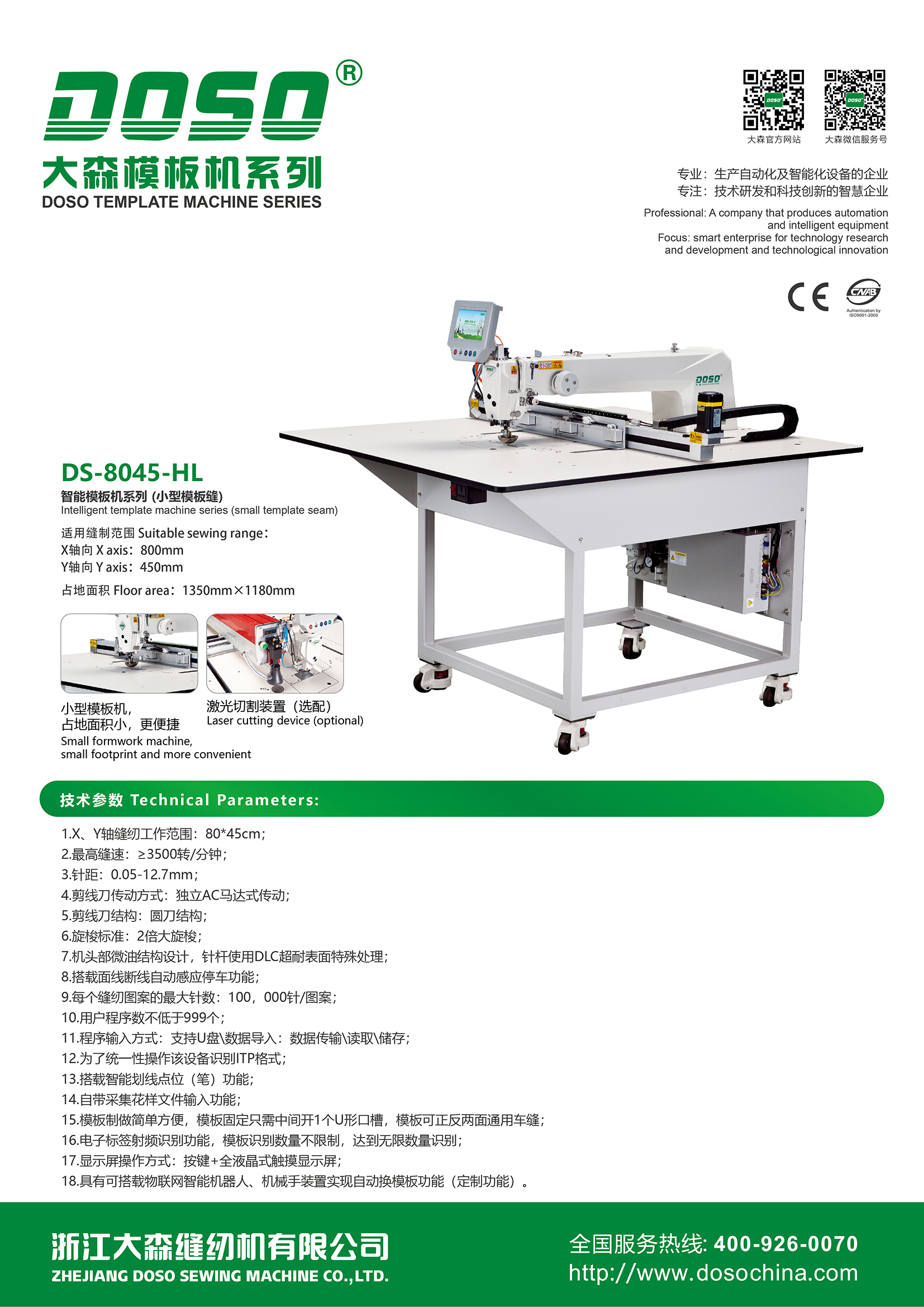 Suitable sewing range: X axis:800mm Y axis:450mm Floor area:1350mm×1180mm