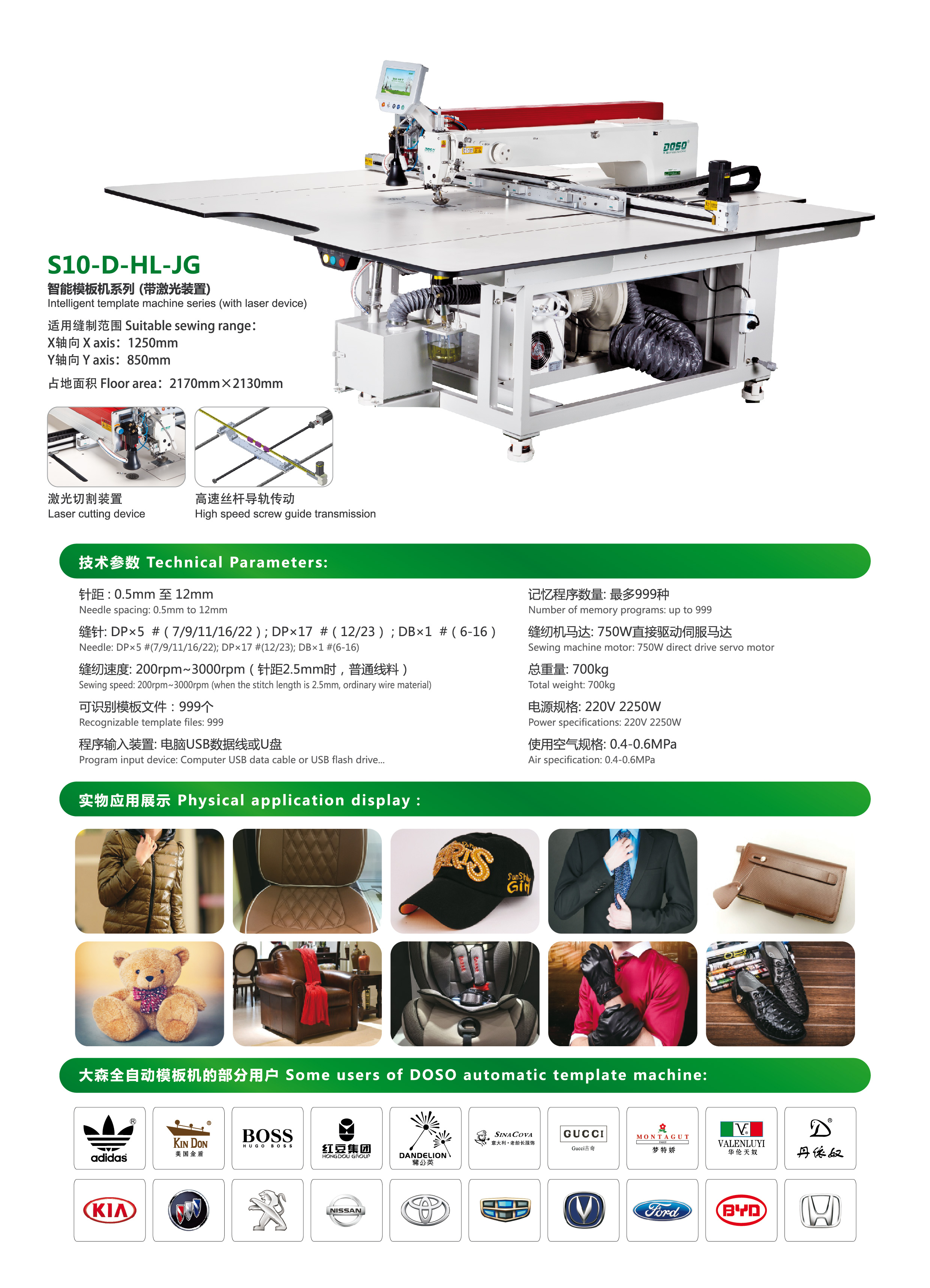 Suitable sewing range: X axis:1250mm Y axis:850mm Floor area:2170mm×2130mm