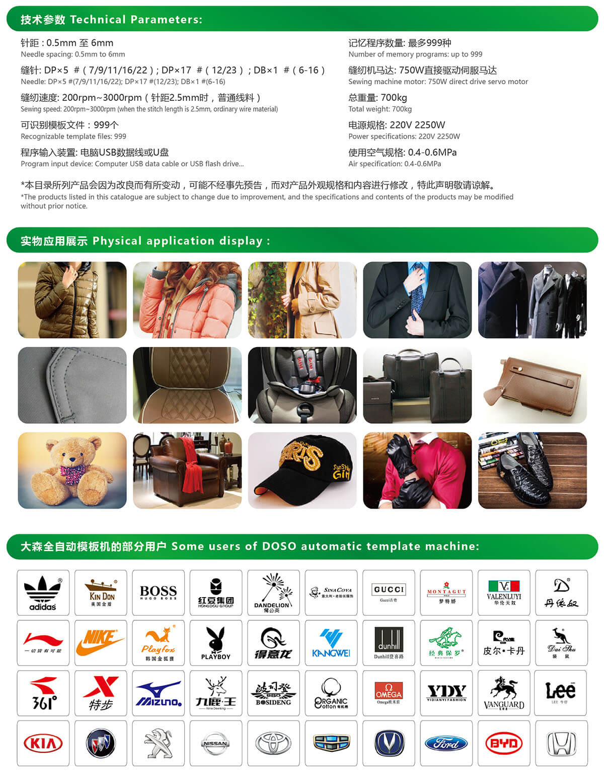 Suitable sewing range: X axis:1250mm Y axis:900mm Floor area:2170mm×2130mm