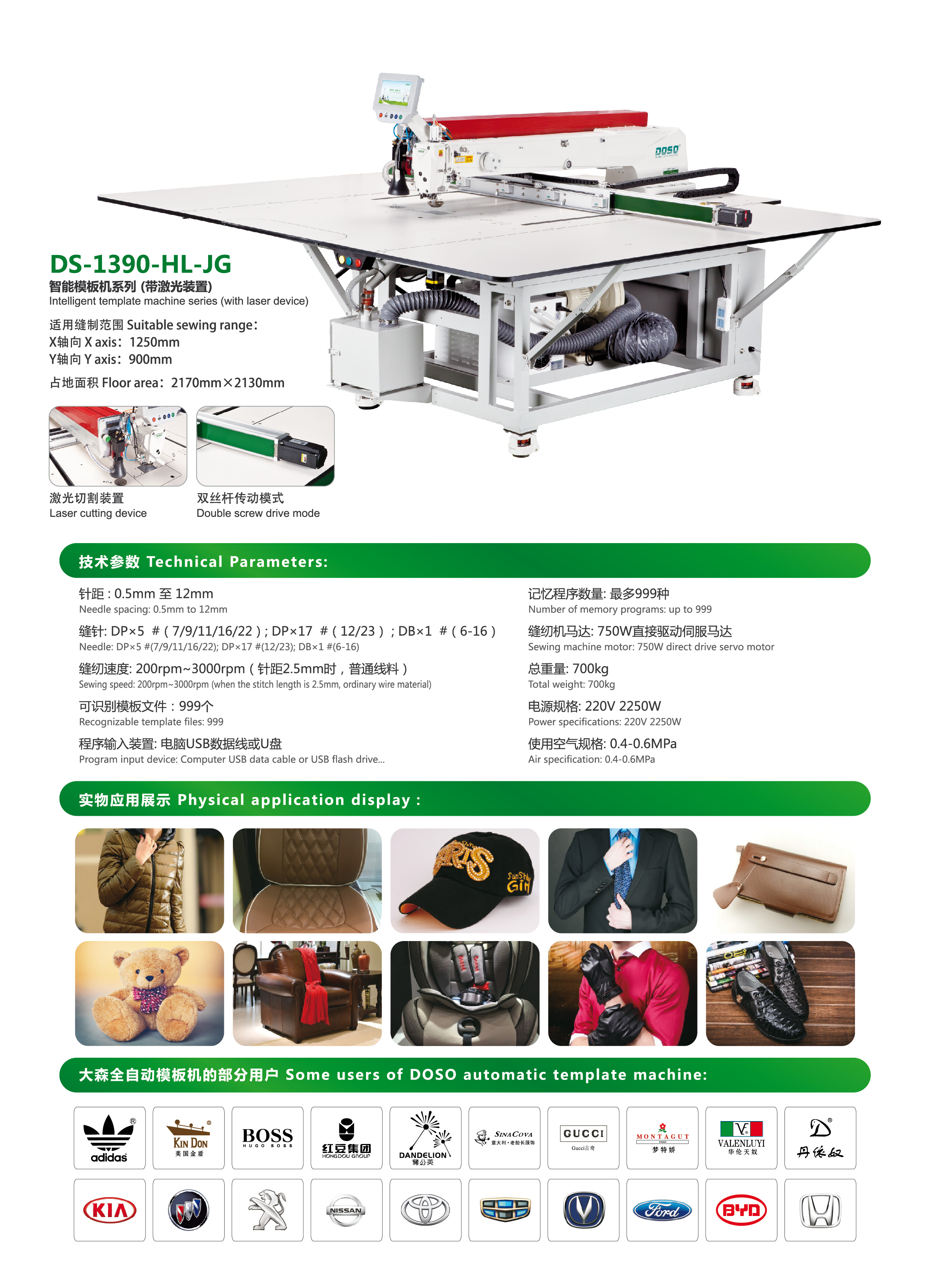 Suitable sewing range: X axis:1250mm Y axis:900mm Floor area:2170mm×2130mm